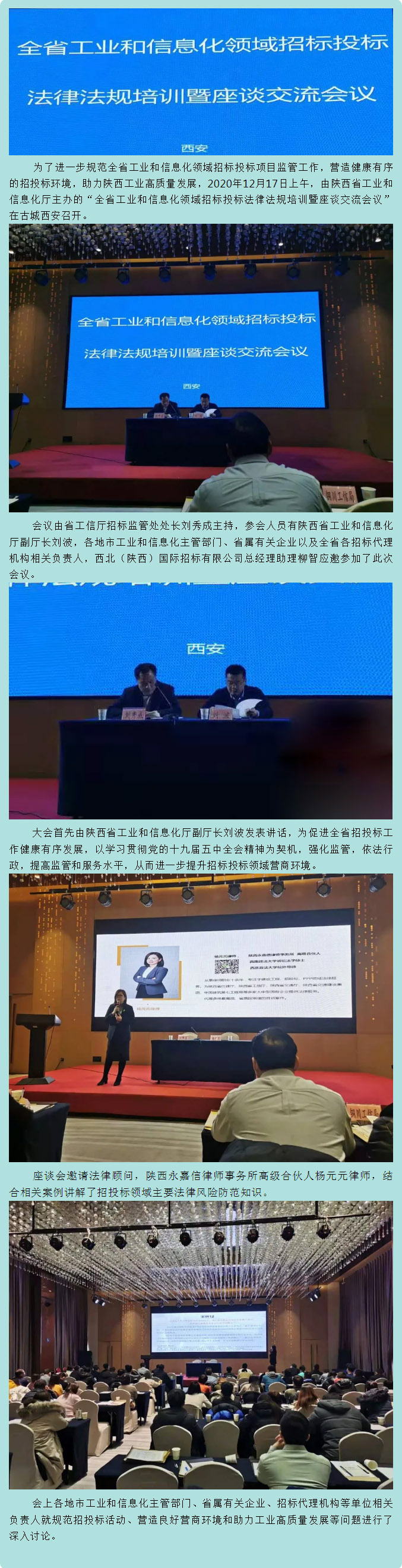 我公司總經(jīng)理助理柳智受邀參加陜西省工業(yè)和信息化領(lǐng)域招標投標法律法規(guī)培訓暨座談交流會議