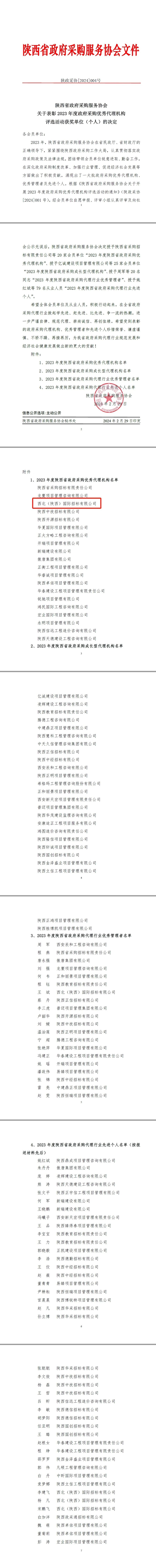熱烈祝賀我公司榮獲 “2023年度陜西省政府采購優(yōu)秀代理機構(gòu)”