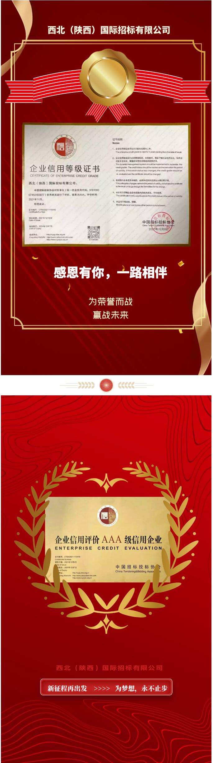 我公司榮獲【中國招投標協(xié)會】頒發(fā)的《企業(yè)信用評價AAA證書》