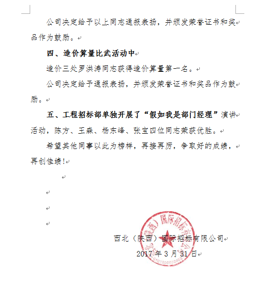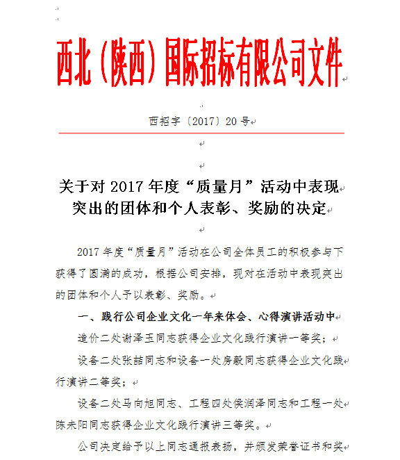 2017年度質(zhì)量月活動(dòng),公司集中開展了:“ISO9001新版宣貫”、“政府采購(gòu)相關(guān)政策和法規(guī)的宣講”、“審計(jì)工作的培訓(xùn)”、“新員工入職系列培訓(xùn)”、“造價(jià)制度宣貫”;“政府采購(gòu)政策考試”、“案例分析”、“造價(jià)算量比武”、 “模擬開標(biāo)技術(shù)比武”; “假如我是部門經(jīng)理”、“踐行公司企業(yè)文化一年來(lái)體會(huì)、心得演講”等一系列活動(dòng)。