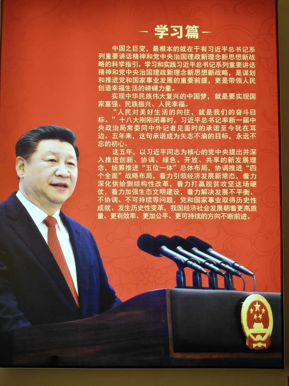 本次展覽分為學(xué)習(xí)篇和追夢(mèng)篇。圍繞學(xué)習(xí)貫徹習(xí)近平總書記系列重要講話精神和治國(guó)理政新理念新思路新戰(zhàn)略,全面展示十八大以來黨中央統(tǒng)籌推進(jìn)“五位一體”總體布局和協(xié)調(diào)推進(jìn)“四個(gè)全面”戰(zhàn)略布局的生動(dòng)實(shí)踐,黨和國(guó)家事業(yè)發(fā)展的輝煌成就;集中展示我省全面深入貫徹習(xí)近平總書記系列重要講話特別是來陜視察重要講話精神,落實(shí)“五個(gè)扎實(shí)”,奮力追趕超越的顯著成效和未來五年發(fā)展的任務(wù)舉措、目標(biāo)藍(lán)圖。