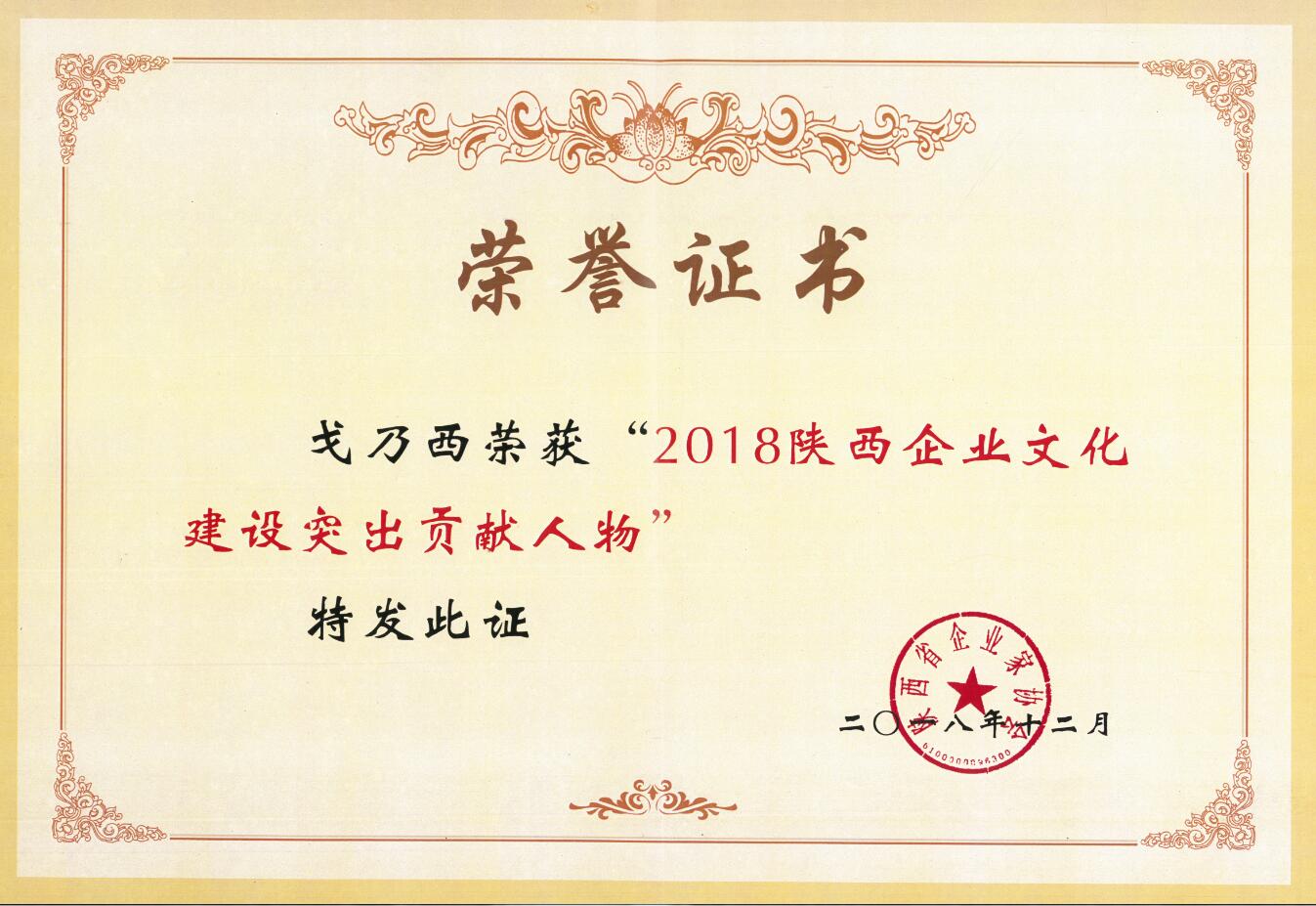 熱烈祝賀我公司總經(jīng)理戈總獲2018陜西企業(yè)文化建設(shè)突出貢獻人物獎