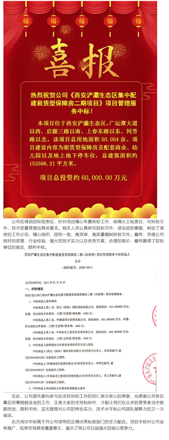喜報!我公司中標西安浐灞生態(tài)區(qū)集中配建租賃保障房二期項目管理服務(wù)