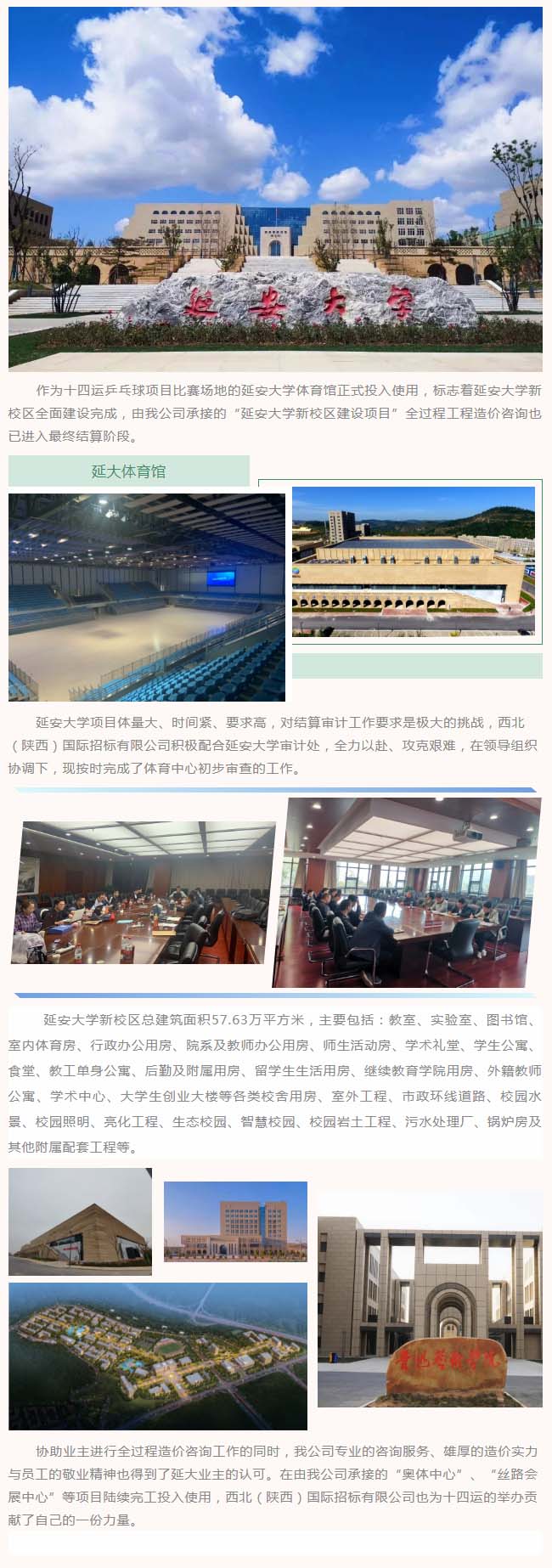 我公司全過程造價(jià)咨詢項(xiàng)目“延安大學(xué)體育館”投入使用,為十四運(yùn)添磚加瓦