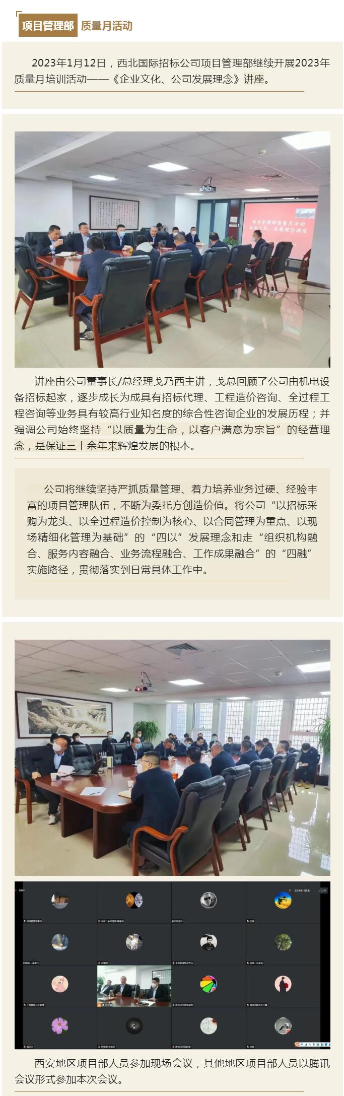 - 下一篇:西北國際招標(biāo)公司項(xiàng)目管理部舉行2022年度總結(jié)會暨“質(zhì)量月”活動啟動會 [2023-01-10]