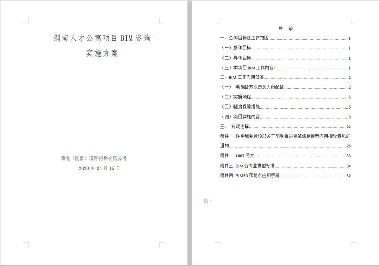 我公司于2020年4月成功中標渭南高新區(qū)東區(qū)人才公寓項目全過程工程咨詢,是我公司首例包含BIM技術應用的全過程工程咨詢項目。BIM中心對成立以來的首個項目格外重視,在項目前期充分準備,工作有序開展。在鞏總、王東總的指導下,完成了部分階段性工作。疫情期間,BIM中心成員多方搜集資料,深入學習,不斷調整思路,多次在綜合管理部內部、渭南項目部通過視頻會議的形式,修改討論,完成了實施方案從0到1的編制工作,明確了本項目的總體目標與工作范圍,對BIM應用做出了準確的規(guī)劃與部署。