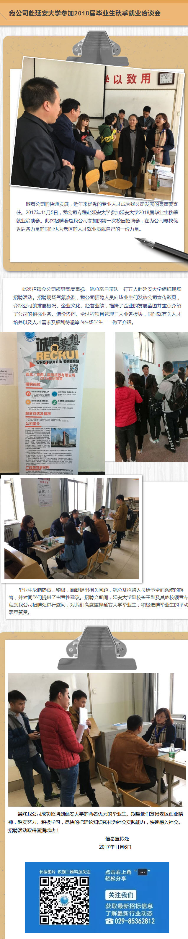 我公司赴延安大學(xué)2018屆畢業(yè)生秋季就業(yè)洽談會