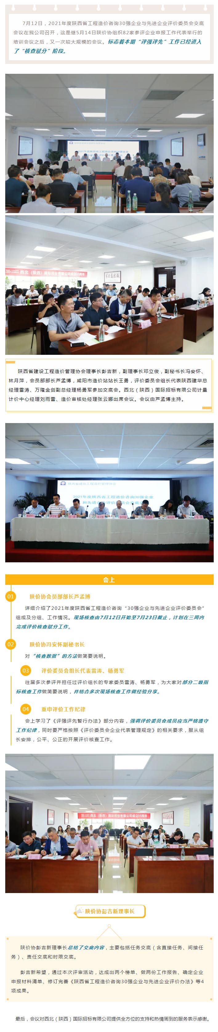 2021年度陜西省工程造價咨詢30強企業(yè)與先進企業(yè)評價委員會交底會議在我公司召開