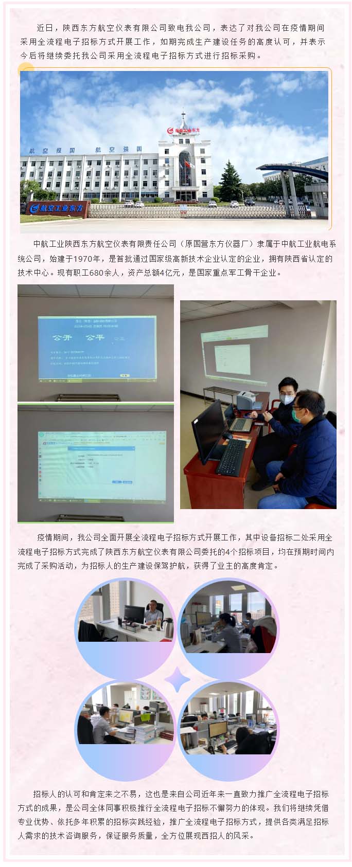 陜西東方航空儀表有限公司致電我公司,將繼續(xù)采用全流程電子招投標方式進行招標采購