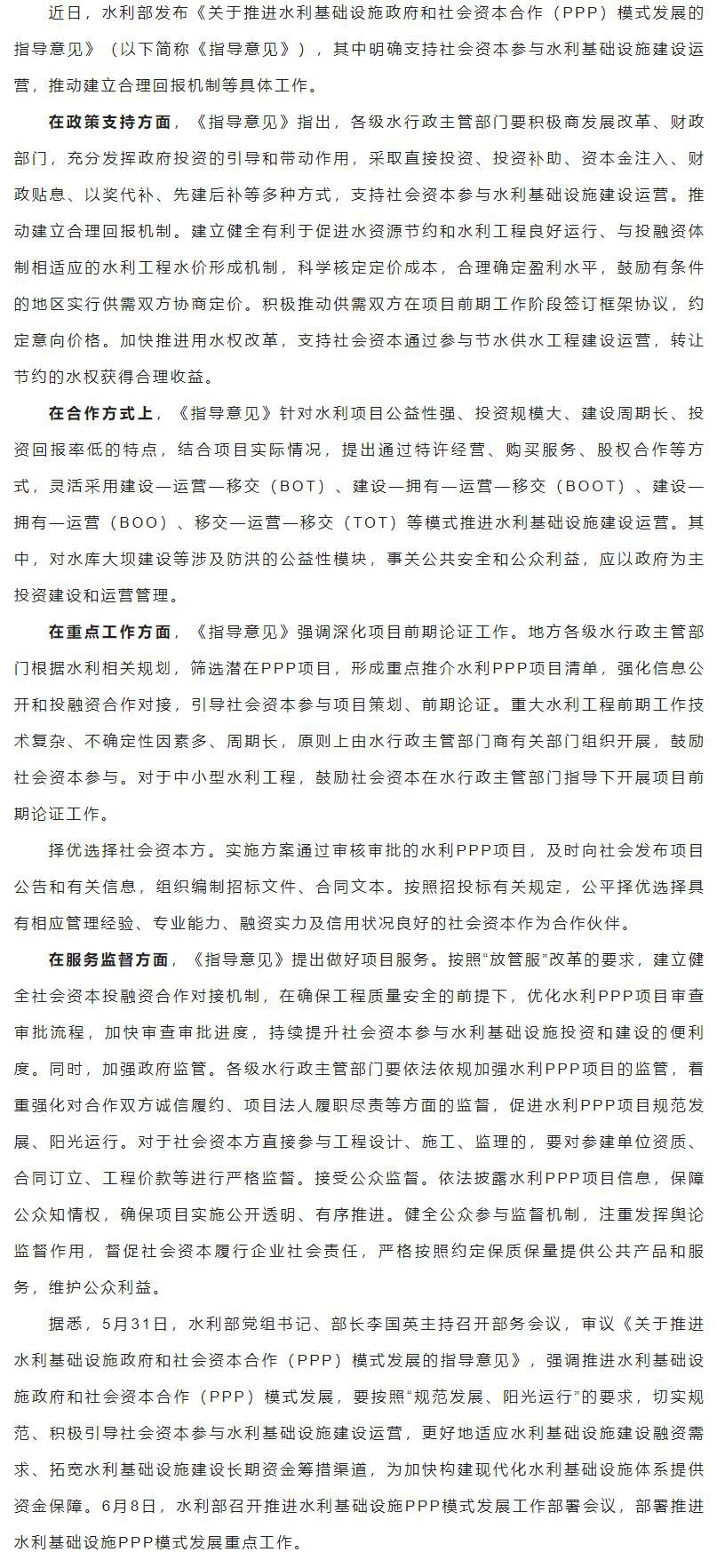 水利部|支持社會(huì)資本參與水利基礎(chǔ)設(shè)施PPP項(xiàng)目建設(shè)運(yùn)營(yíng)